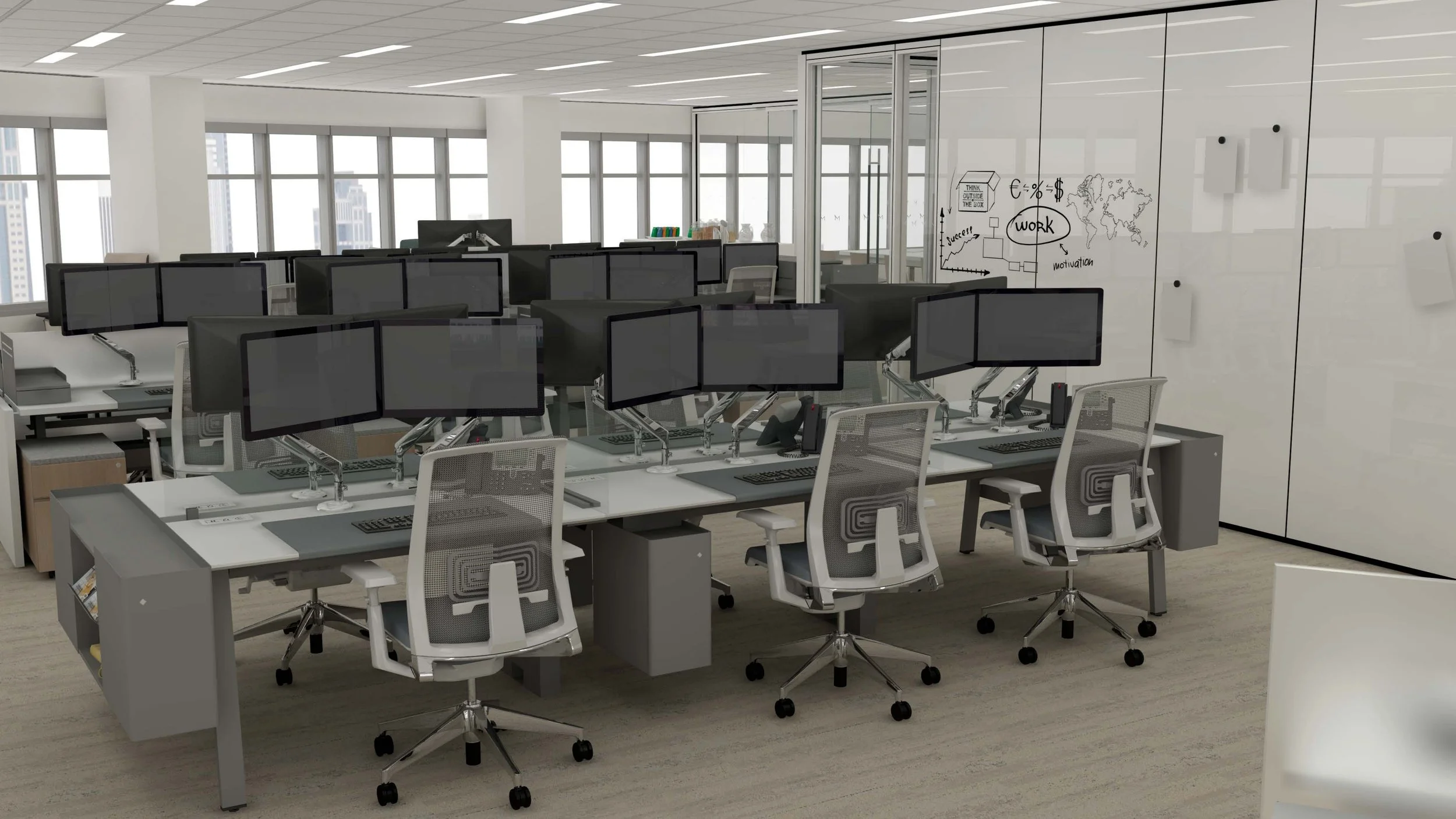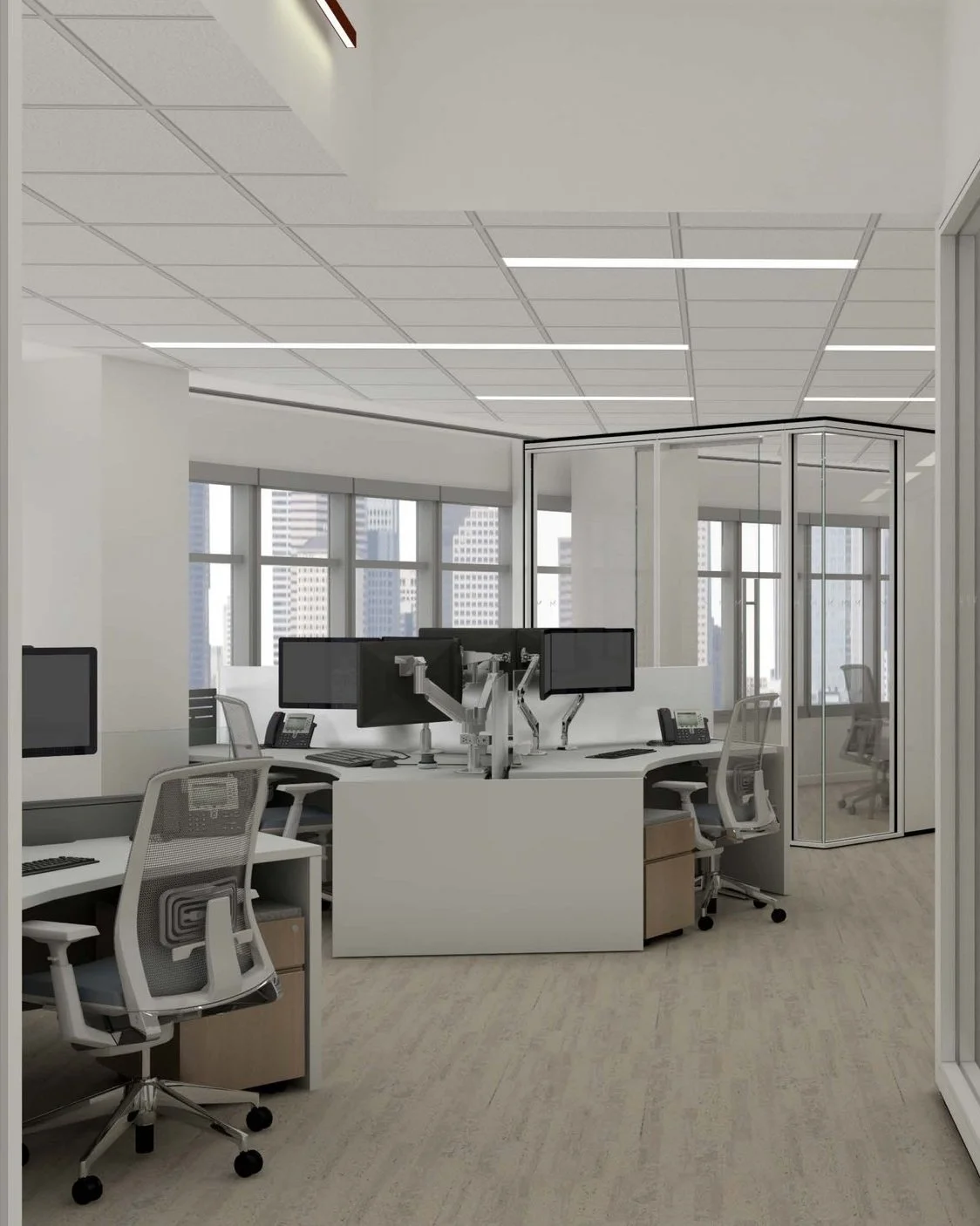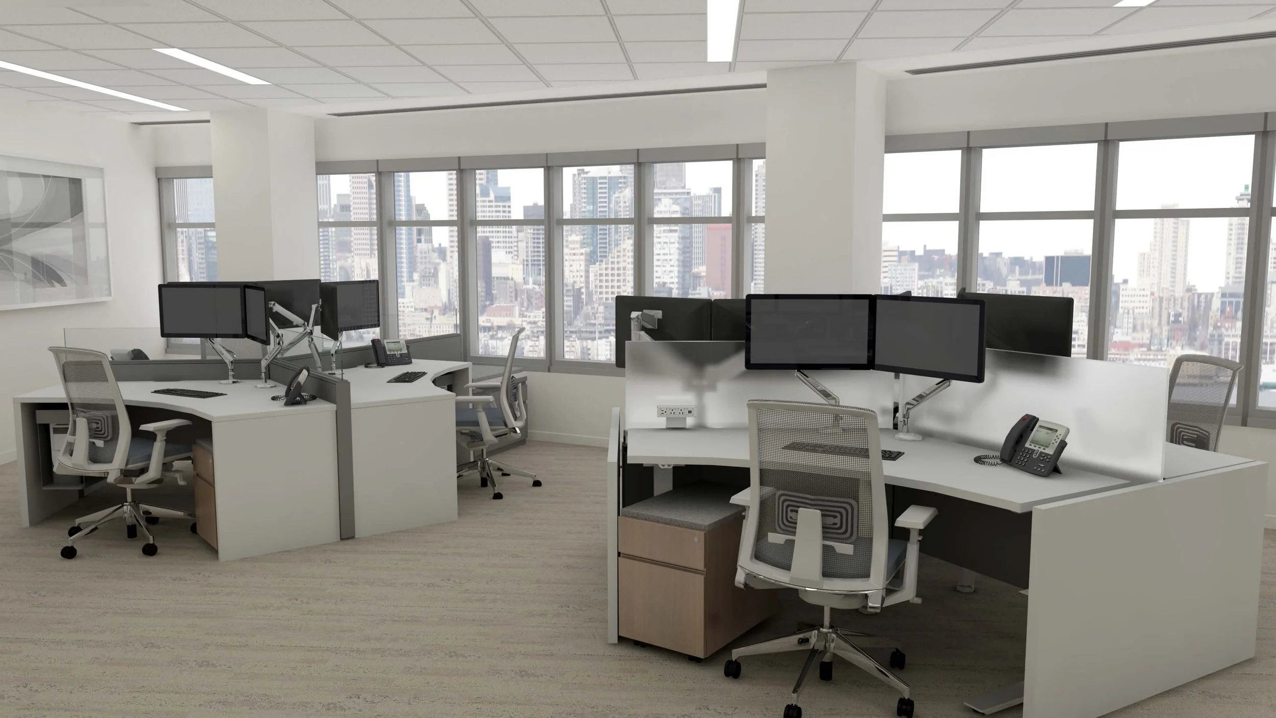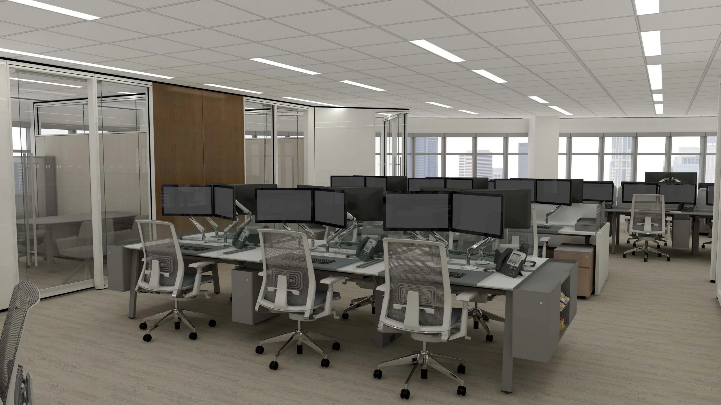 Meadows Office Interiors aimed to revitalize their design space to effectively showcase the various stations and office products manufactured by Haworth, while also optimizing the layout to accommodate an expanding workforce. My goal for this in-house office refresh was to space plan and specify Haworth's most frequently used benching and panel systems, exhibiting how they can seamlessly blend together while creating a cohesive color scheme that aligns with Meadows' design aesthetic. Explore all the intricate details that contribute to the final result by scrolling to the bottom of my drawing set.