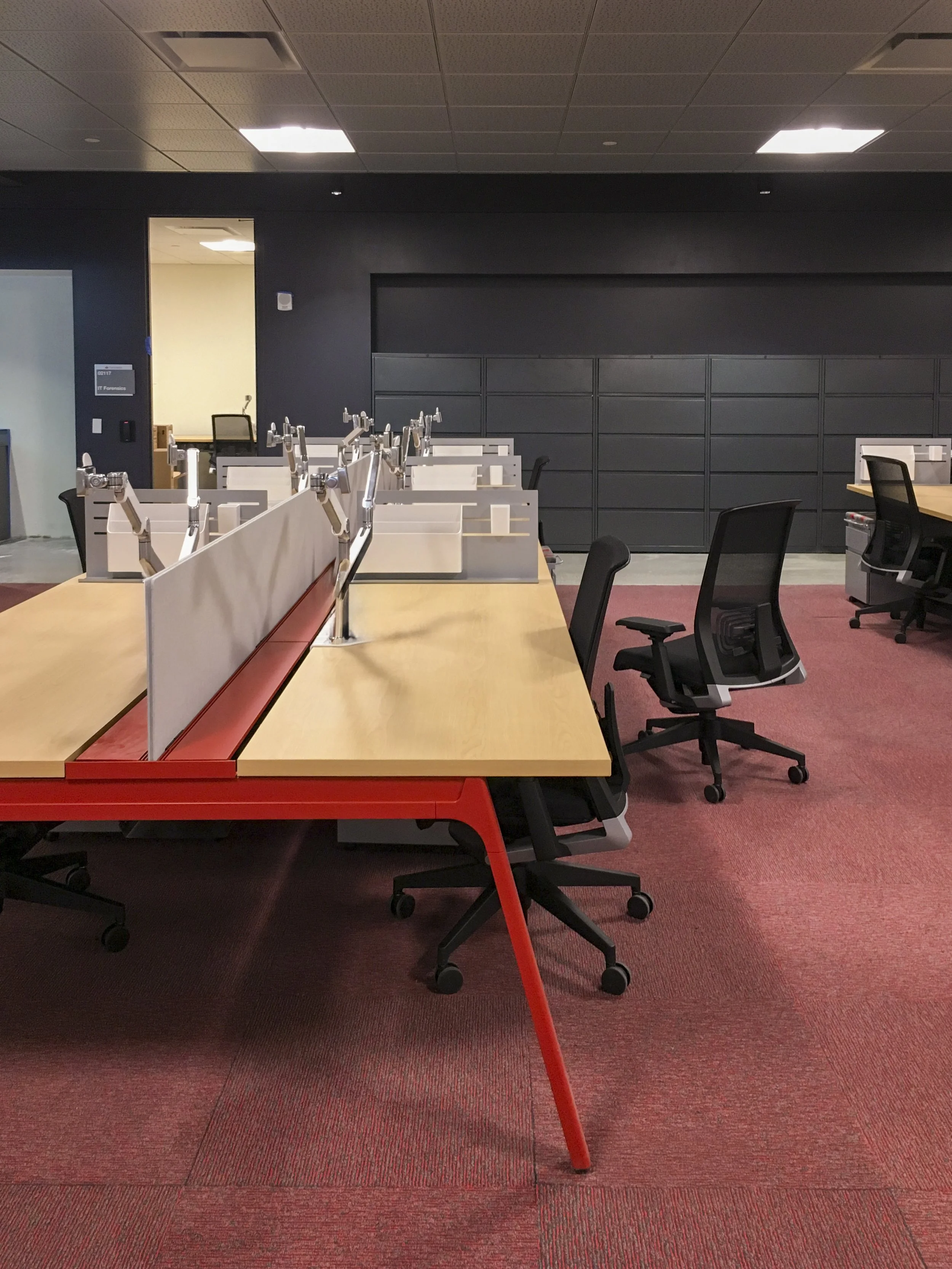This prominent bank aimed to innovate and expand their retail and corporate offices. I contributed to developing their furniture standards, selecting finishes, and specifying custom product compatible with their retail banking equipment. As a result, we launched over 40 retail banks across New Jersey, New York City, and Connecticut. The samples of my work shown below are from their corporate office in NJ. The bank sought to create a more modern office ambiance, so we provided Haworth Intuity benching along with a diverse array of ancillary lounge and conference furniture.