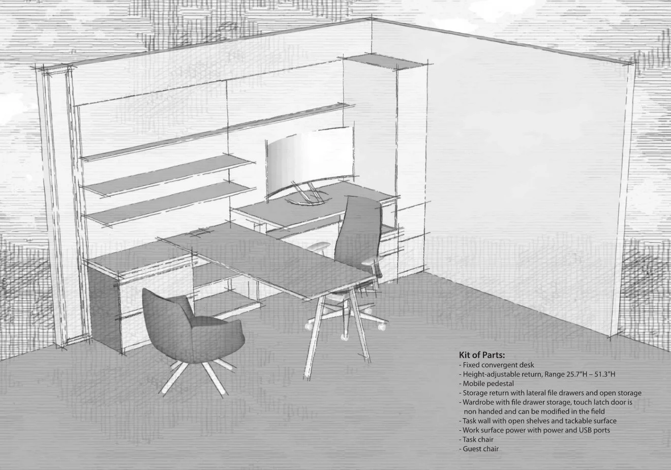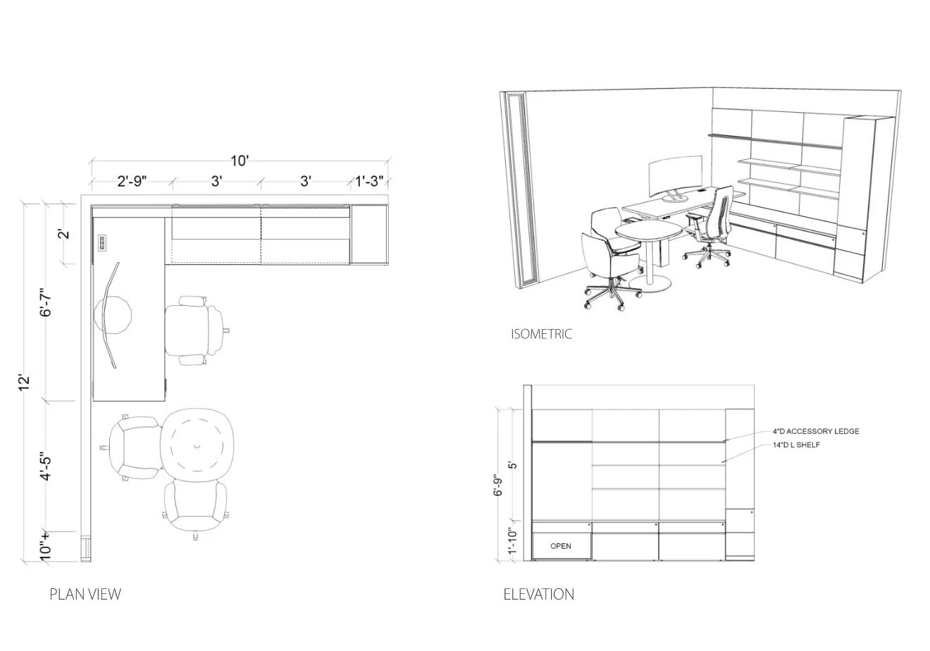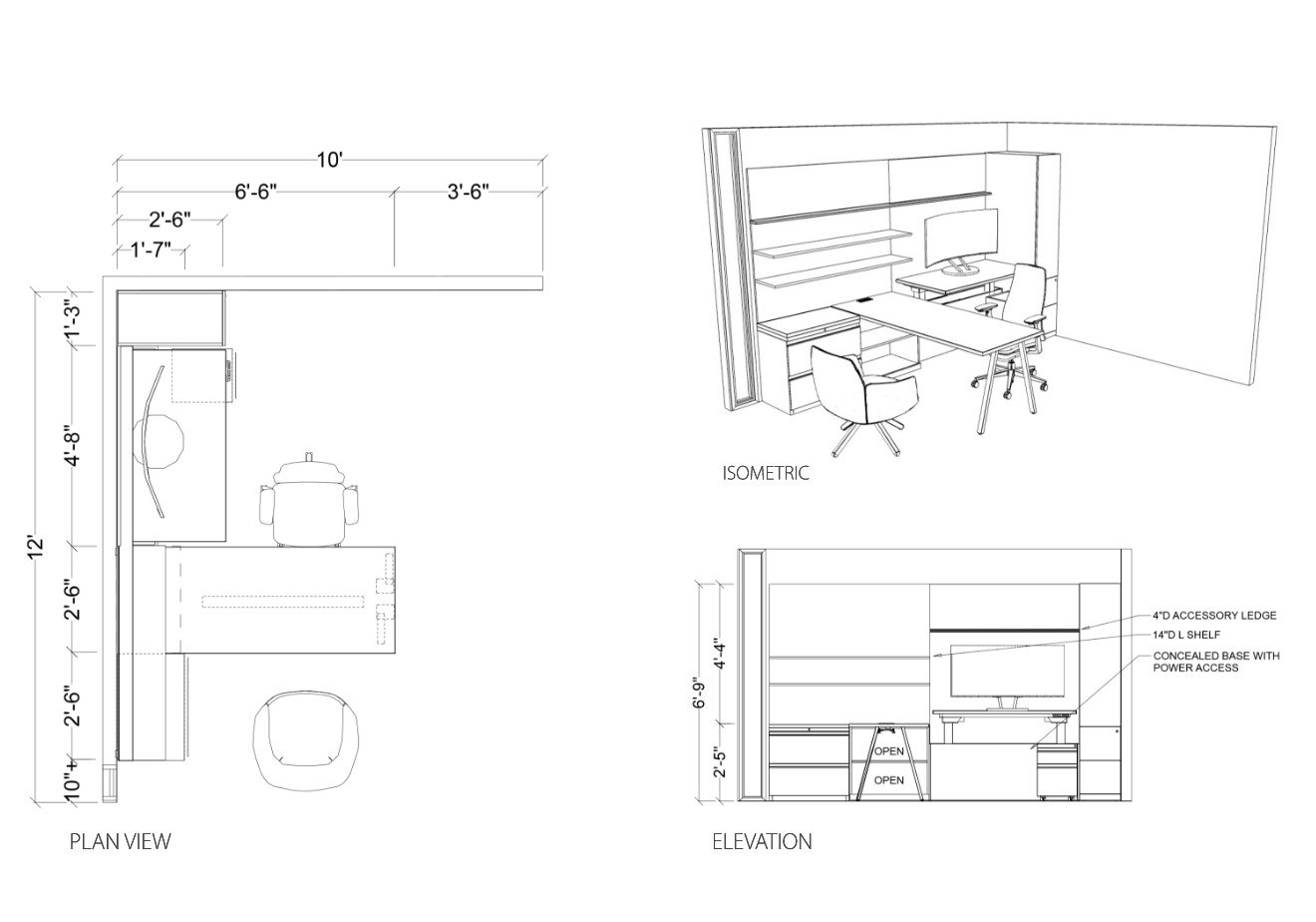 A leading bank located in NYC temporarily relocated to a new building, occupying 20 floors for commercial office use. The workstations and offices I specified needed height adjustability, additional space for monitors and equipment, adherence to Haworth's weight restrictions, and specialized power to accommodate their heavy data needs. This project required close collaboration with their architects and engineers. Below are several concept drawings, along with two sample drawing sets used for communication with all trades.