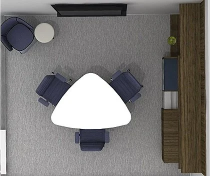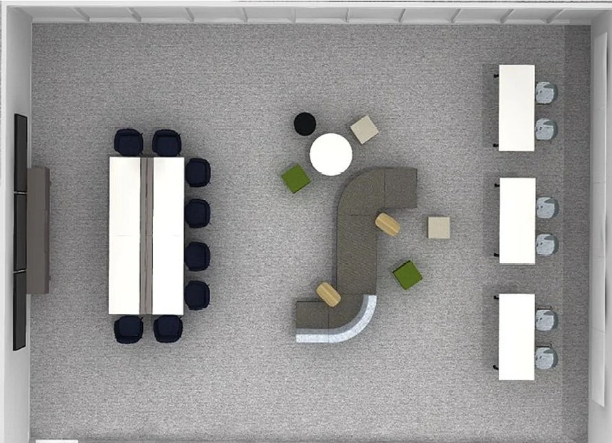 This project involved working with a leading bank to upgrade their corporate conference rooms for Zoom meetings. Using CET, I created Haworth furniture layouts for both small and large conference rooms. The renderings provided clear visual options, helping the bank's decision-makers understand the potential setups and choose the best solutions for their needs.